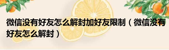 微信没有好友怎么解封加好友限制(微信没有好友怎么解封)