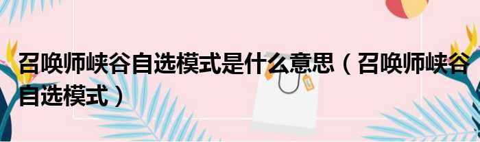 召唤师峡谷自选模式是什么意思(召唤师峡谷自选模式)