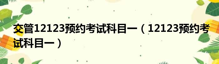 导读 大家好,小东方来为大家解答以上的问题。交管12123预约考试科目一,12123预约考试科目一这个很多人还不知道,现在让我们一起来看看吧!1、1