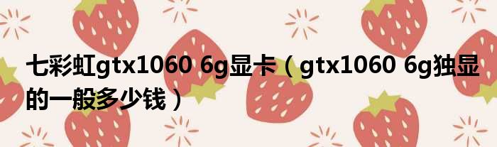七彩虹gtx1060 6g显卡(gtx1060 6g独显的一般多少钱)