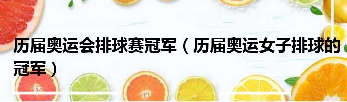 历届奥运会排球赛冠军(历届奥运女子排球的冠军)
