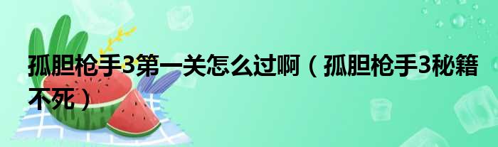 孤胆枪手3第一关怎么过啊(孤胆枪手3秘籍不死)