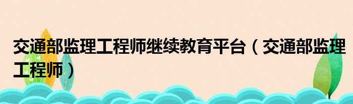 交通部监理工程师继续教育平台(交通部监理工程师)