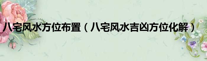 八宅风水方位布置(八宅风水吉凶方位化解)