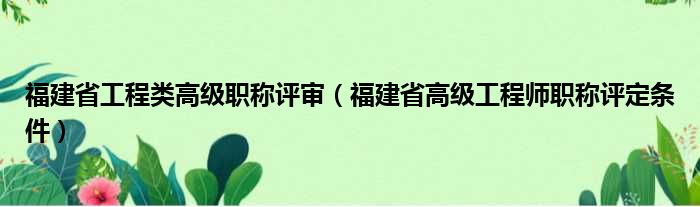 福建省工程类高级职称评审(福建省高级工程师职称评定条件)