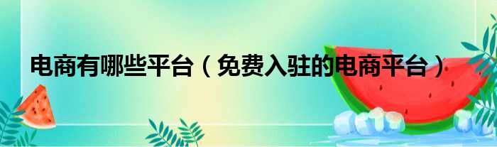 电商有哪些平台(免费入驻的电商平台)