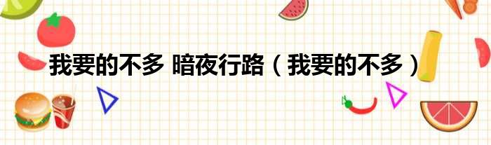 大家好,小东方来为大家解答以上的问题。我要的不多 暗夜行路,我要的不多这个很多人还不知道,现在让我们一起来看看吧!