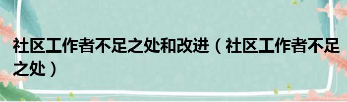 大家好,小东方来为大家解答以上的问题。社区工作者不足之处和改进,社区工作者不足之处这个很多人还不知道,现在让我们一起来看看吧!