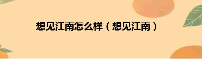 大家好,小东方来为大家解答以上的问题。想见江南怎么样,想见江南这个很多人还不知道,现在让我们一起来看看吧!