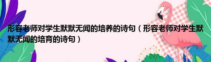 形容老师对学生默默无闻的培养的诗句(形容老师对学生默默无闻的培育的诗句)