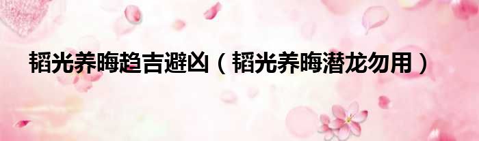 韬光养晦趋吉避凶(韬光养晦潜龙勿用)