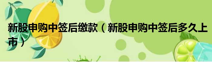 导读 大家好,小东方来为大家解答以上的问题。新股申购中签后缴款,新股申购中签后多久上市这个很多人还不知道,现在让我们一起来看看吧!1、新股