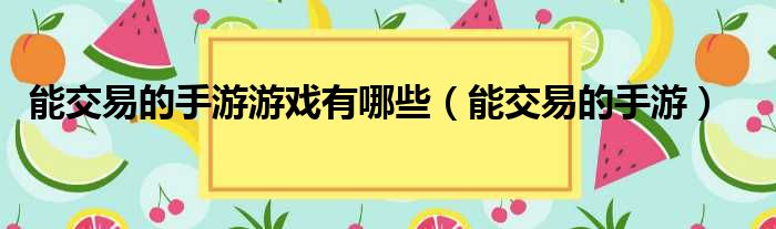 大家好,小东方来为大家解答以上的问题。能交易的手游游戏有哪些,能交易的手游这个很多人还不知道,现在让我们一起来看看吧!