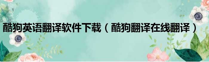酷狗英语翻译软件下载(酷狗翻译在线翻译)