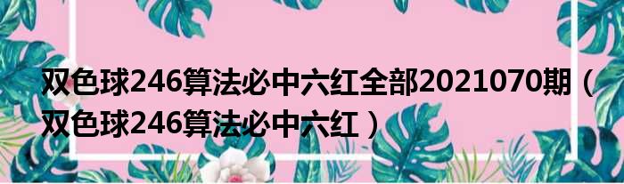 导读 大家好,小东方来为大家解答以上的问题。双色球246算法必中六红全部2021070期,双色球246算法必中六红这个很多人还不知道,现在让我们一起来