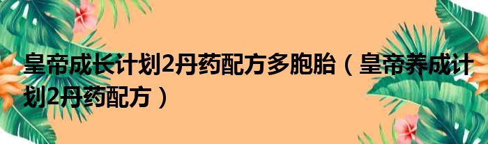 皇帝成长计划2丹药配方多胞胎(皇帝养成计划2丹药配方)