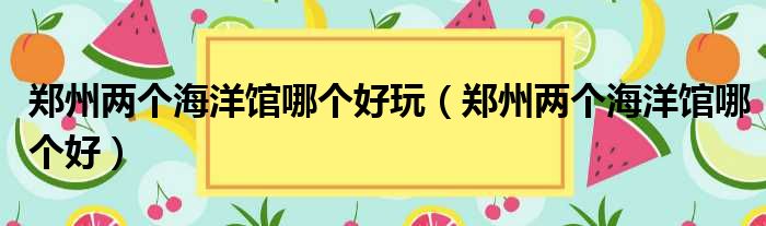 郑州两个海洋馆哪个好玩(郑州两个海洋馆哪个好)