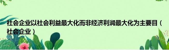 社会企业以社会利益最大化而非经济利润最大化为主要目(社会企业)