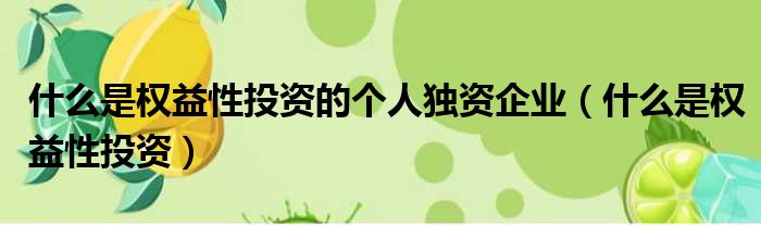 什么是权益性投资的个人独资企业(什么是权益性投资)