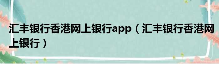 汇丰银行香港网上银行app(汇丰银行香港网上银行)