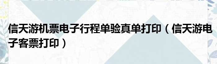 导读 大家好,小东方来为大家解答以上的问题。信天游机票电子行程单验真单打印,信天游电子客票打印这个很多人还不知道,现在让我们一起来看看吧!