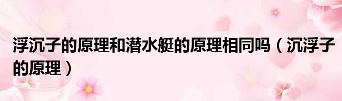 浮沉子的原理和潜水艇的原理相同吗(沉浮子的原理)