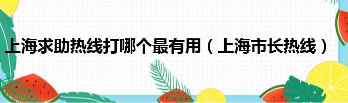大家好,小东方来为大家解答以上的问题。上海求助热线打哪个最有用,上海市长热线这个很多人还不知道,现在让我们一起来看看吧!