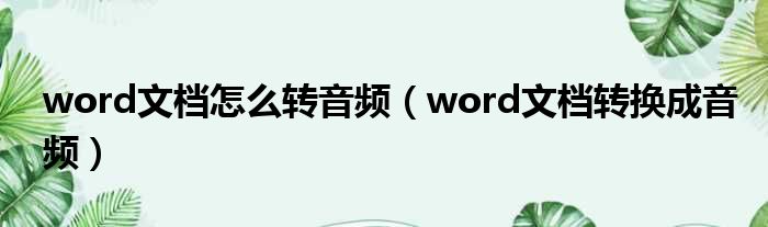 大家好,小东方来为大家解答以上的问题。word文档怎么转音频,word文档转换成音频这个很多人还不知道,现在让我们一起来看看吧!
