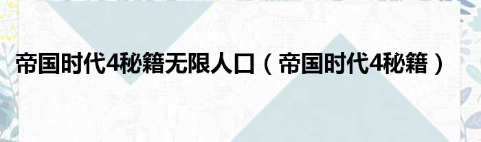 帝国时代4秘籍无限人口(帝国时代4秘籍)