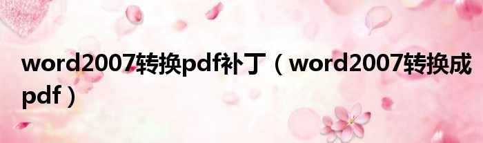 word2007转换pdf补丁(word2007转换成pdf)