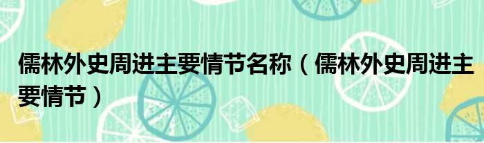 儒林外史周进主要情节名称(儒林外史周进主要情节)