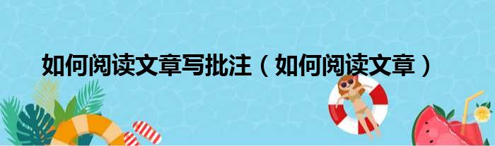 导读 大家好,小爱来为大家解答以上问题。如何阅读文章写批注,如何阅读文章很多人还不知道,现在让我们一起来看看吧!1、调查背景知识。有些文