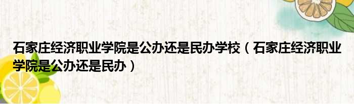 石家庄经济职业学院是公办还是民办学校(石家庄经济职业学院是公办还是民办)