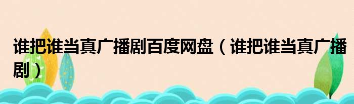 谁把谁当真广播剧百度网盘(谁把谁当真广播剧)