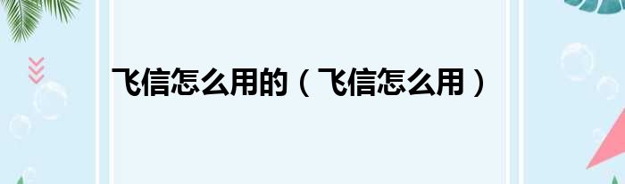 飞信怎么用的(飞信怎么用)