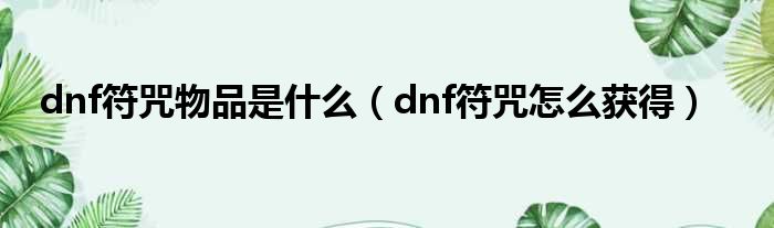 dnf符咒物品是什么(dnf符咒怎么获得)