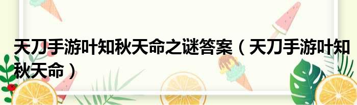 天刀手游叶知秋天命之谜答案(天刀手游叶知秋天命)