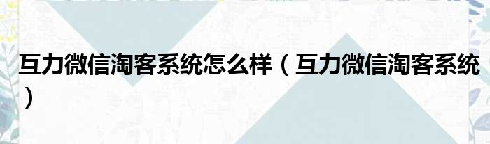 互力微信淘客系统怎么样(互力微信淘客系统)