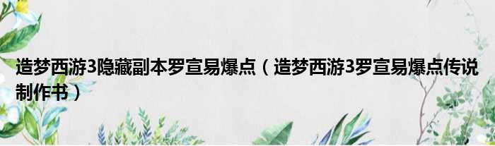 造梦西游3隐藏副本罗宣易爆点(造梦西游3罗宣易爆点传说制作书)