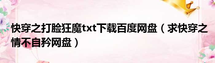 快穿之打脸狂魔txt下载百度网盘(求快穿之情不自矜网盘)