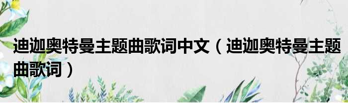 迪迦奥特曼主题曲歌词中文(迪迦奥特曼主题曲歌词)