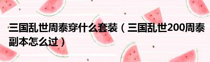 三国乱世周泰穿什么套装(三国乱世200周泰副本怎么过)