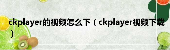 ckplayer的视频怎么下(ckplayer视频下载)