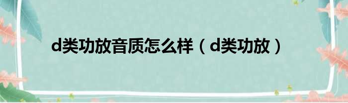 大家好,小东方来为大家解答以上的问题。d类功放音质怎么样,d类功放这个很多人还不知道,现在让我们一起来看看吧!