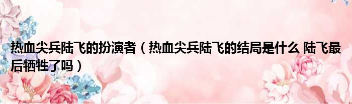 热血尖兵陆飞的扮演者(热血尖兵陆飞的结局是什么 陆飞最后牺牲了吗)