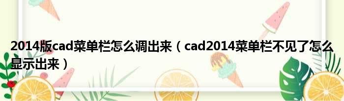 2014版cad菜单栏怎么调出来(cad2014菜单栏不见了怎么显示出来)