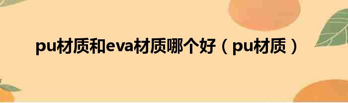 大家好,小东方来为大家解答以上的问题。pu材质和eva材质哪个好,pu材质这个很多人还不知道,现在让我们一起来看看吧!
