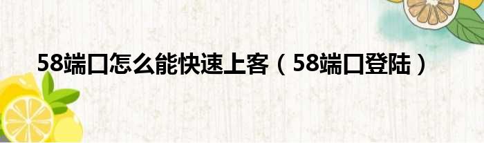 大家好,小东方来为大家解答以上的问题。58端口怎么能快速上客,58端口登陆这个很多人还不知道,现在让我们一起来看看吧!