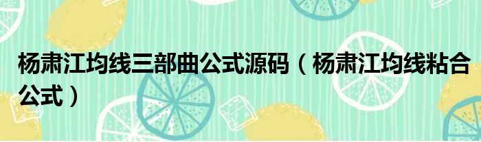 导读 大家好,小东方来为大家解答以上的问题。杨肃江均线三部曲公式源码,杨肃江均线粘合公式这个很多人还不知道,现在让我们一起来看看吧!1、中