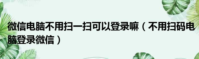 微信电脑不用扫一扫可以登录嘛(不用扫码电脑登录微信)